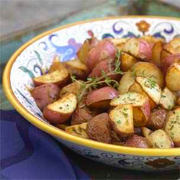 1. Heat oven to 400°F. Scrub potatoes clean, remove any eyes and cut in half. Place |