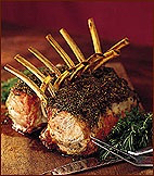 2. Preheat the oven to 450°. Arrange the racks back to back with the frenched bones crisscrossed and pointing upwards. Roast the racks in the lower third of the oven for 15 minutes. Reduce the oven temperature to 350° and continue to roast for about 1 hour and 10 minutes longer, or until an instant-read thermometer inserted in the thickest part of the meat in the center of one of the racks registers 130° for medium meat. Transfer the racks to a carving board, cover loosely with foil and let rest for 15 to 20 minutes; the final temperature will be 140° to 145°. |