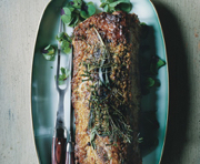 This handsome roast elicited oohs and aahs in the test kitchen when Ruggiero pulled it out of the oven, and the succulent meat disappeared in a flurry of forks. The rosemary, thyme, sage, and savory sprigs on which the pork loin roasts infuse the meat and mingle with its mustard and shallot cloak. The luscious sauce is argument enough for keeping a bottle of dry vermouth on hand.