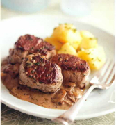 Trim the tenderloins of silver- skin and any excess fat. Cut the tenderloins into 2-inch- thick medallions. Flip each medallion onto a cut side and press down with the palm of your hand to flatten slightly. Season the meat with 3/4 tsp. salt and 1/4 tsp. black pepper. Heat the olive oil and 1 Tbs. of the butter in a large saute pan over high heat. When the butter is melted and foaming, add half of the meat and sear until nicely browned, 2 to 3 minutes. Flip and cook the other side until the meat is well browned and slightly firm to the touch, about another 2 minutes. Transfer to a plate and repeat with the remaining pork. Melt the remaining 2 Tbs. butter in the pan. Add the shallots and a pinch of salt and saute for about 30 seconds, using a wooden spoon to scrape up any browned bits from the bottom of the pan. Add the mushrooms and saute until all of the mushroom liquid has evaporated and the mushrooms are golden, about 3 minutes. Season with 1/2 tsp. salt, sprinkle with the flour, and add the Marsala. Once the Marsala has almost completely evaporated, add the chicken broth and reduce by half, about 3 minutes. Stir in the cream and parsley, return the pork and any accumulated juices to the pan, and cook, flipping the pork once, until it's firm to the touch and still a little pink in the middle (cut into a piece to check), 2 to 4 minutes. Taste for salt and pepper and serve. |